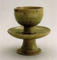 说 明: 此套青瓷托杯,应是南朝酒具中的佳作.釉汁莹亮,开冰裂碎片.