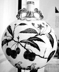 明代五彩、青花瓷器展品几乎都是景德镇烧制的官窑器,五彩缤纷,花枝招展,正合西洋人喜欢华贵热闹的个性特点,极具观赏的艺术效果。最名贵的要数明成化的斗彩鸡缸杯。据赵汝珍著的《古玩指南》记载:“明成化窑斗彩鸡缸杯,现存仅三只。”而大英博物馆就有两只,真让人大开眼界。明正德皇帝在位16年,淫乐嬉游,纵情声色;后因大兴土木扩建皇庄,不惜掠夺人民土地,激起人民反抗。正德年带款五彩瓷器比较少见,这里展示的香炉、花瓶等都是难得一见的珍宝。