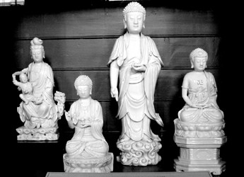 展品中数量最多的要算龙泉青瓷和德化白瓷,有趣的是只要看看其他展馆中的欧洲同期生产的青花陶釉器的粗俗,就会感到这两种器物是多么出神入化了。碧绿如湖水的龙泉青瓷和洁白似冰雪的德化白瓷是我国最早进入西欧的瓷器之一,故有特殊的地位。连在马克思写《资本论》的大英博物馆阅览室的书架上,也有不少德化白瓷佛像陈列,这让我吃惊不小。