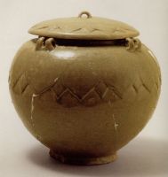 说 明: 莲瓣纹是南朝时期主要纹饰,但一般多为刻划技法,此类浮雕手法较独特.