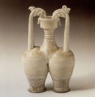 说 明: 此壶胎为白色,白釉不到底.器身有细小冰裂纹.造型特殊,别具一格.