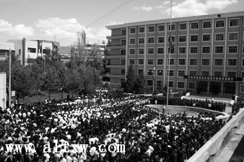 为表达对汶川大地震中遇难人们的哀悼,5月19日北京时间14时28分,阿勒泰山城人民怀着沉重的心情在旧行署楼门前同全国人民一道下半旗为在汶川大地震中所有遇难的人们致哀。
