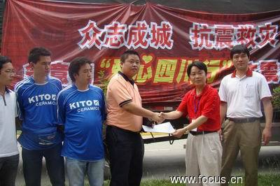 此次,KITO“爱心午一点钟车队安全到达中国红协德阳救灾中心,KITO公司员工代表与红十字协会邱部长签署了总共26万元的物资核实交接手续。