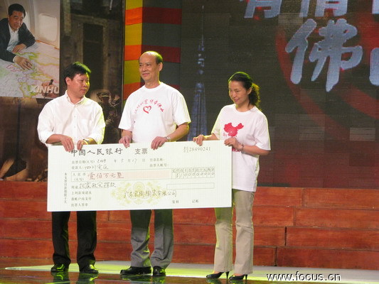 5月17日晚上在佛山新闻中心,宏宇企业应邀参加由佛山市红十字会、佛山市慈善会和佛山传媒集团主办的“汶川地震 情牵佛山” 佛山各界大型赈灾义演晚会,副总欧家瑞先生作为企业界的嘉宾代表接受记者的现场采访。欧总为灾区人民的危难而感到由衷的痛心,为企业全体上下员工踊跃献爱心的热情感到欣慰,并祝愿灾区人民尽快渡过难关,重建家园。