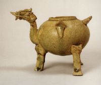 说 明: 此器为古代盛酒器,仿青铜器.施青釉,光亮莹洁.造型新颖别致.为湘阴窑产品.