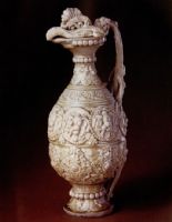 说 明: 凤头龙柄壶是我国唐朝初年北方青釉瓷器的杰作,它在造型上吸收了波斯萨珊王朝金银器中鸟首壶的特点,又融合了中国本土的风格,用龙凤作装饰,精心烧造而成.