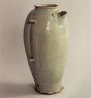 说 明: 设计巧妙美观,满施青绿色釉,有细小纹片,肩部流釉肥厚青翠,玻璃质感强,为典型的唐代水车窑产品.