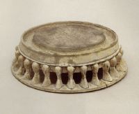 说 明: 这种砚主要流行于南朝至唐宋时期,是古砚的一种重要形制,以其圆形而周边环水如辟雍,故名辟雍砚.