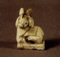 说 明: 白釉透明光亮,施褐彩加以点缀,神态自然,形象逼真.系唐城遗址出土不多见的一件玩赏珍品.