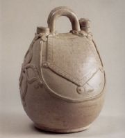 说 明: 通体施白釉,微闪黄,胎白质细坚硬.仿皮囊形作工.