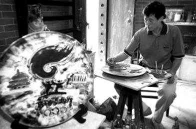 黄淦生是佛山市著名的陶艺家,其陶艺作品曾多次获全国大奖。今年2月份,佛山市作家协会会员张汉锋提议,北京奥运就要来了,为什么不创作一些陶艺作品以示庆祝呢?