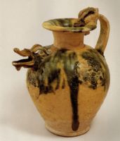 说 明: 此壶造型生动别致,为我国中晚唐北方窑生产的三彩精品.