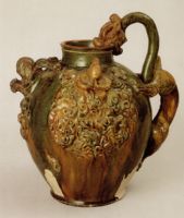 说 明: 釉色鲜丽,流淌熔融,贴塑工艺精湛,构思奇巧,是唐代彩色釉陶器中出类拔萃之作.