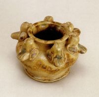 说 明: 胎质灰白,器身褐、绿彩点缀。造型精巧,生动活泼,富有动感。