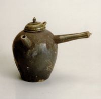 说 明: 胎质青灰色,通体施偏蓝色的绿釉。整体造型精巧玲珑,使用方便。