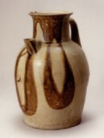 说 明: 胎质灰黄,通体施青釉.壶流一侧从口至腹部以褐色泼釉流彩装饰.