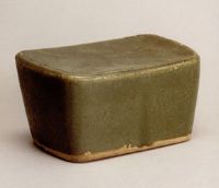 说 明: 施单色绿釉,无纹。枕长方圆角形,枕面微凹。