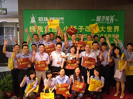 据了解,近日,冠珠瓷质仿古砖在全国专卖店发起“绿我家园,小袋子改变大世界”活动,倡导“每人增加一个环保购物袋,每天减少一个塑料购物袋”,在全国掀起一阵绿色环保风暴。