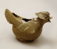 说 明: 通体施青绿釉,制作十分精细。用捏塑、堆帖、刻画等技法饰成。