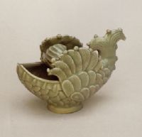 说 明: 整器呈飞鱼形。白瓷胎,坚致细腻,内外施稀薄的青绿釉,晶莹润泽,青翠欲滴。