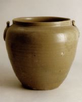 说 明: 罐口直溜肩,腹上鼓下收,平底。罐釉色青黄,造型简朴大方。