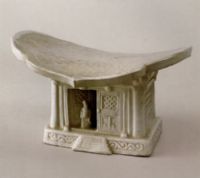 说 明: 通体以灰白瓷胎制成,满施白釉,整体为一古代殿宇建筑。