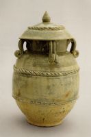 说 明: 施青釉不及底,有流釉现象。此罐造型修长。