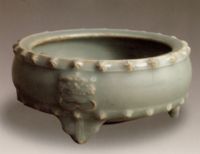 说 明: 胎白致密,施青灰釉,露胎处呈朱红色.