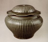 图片名称: 龙泉窑青釉条纹荷叶罐