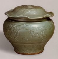 图片名称: 龙泉窑青釉帖花龙凤纹盖罐