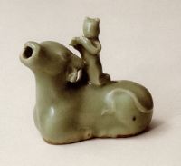 说 明: 整体为牧童骑牛造型,制作精美,富于生气。全器施粉青色釉,釉色匀净无暇。