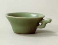 说 明: 敞口圆沿,沿下斜收,平底。全身施粉青色釉,釉质滋润匀净。瓷化程度高。