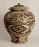 图片名称: 海康窑褐彩凤鸟纹荷叶盖罐