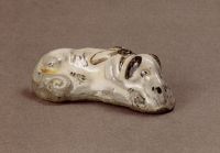 说 明: 此犬生动可爱,灰胎略深,器表透明釉下有化妆土。