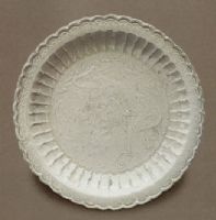 图片名称: 定窑白釉荷花印灶鹤纹盘