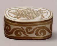 说 明: 枕为腰圆形,枕面为水波纹,枕侧饰圈枝纹。