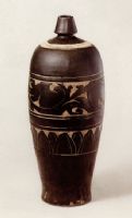 说 明: 通体施黑釉,肩部刮釉一圈,腹部有剔花纹饰两层。