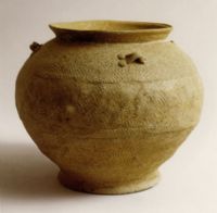 说 明: 原始青瓷。通体满施三周小方格纹宽带条。