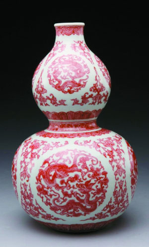 No.8清乾隆《釉里红团龙纹葫芦瓶》