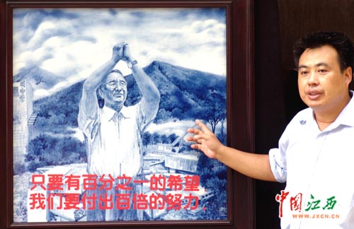 艺术家占晓初研究青花已有20余年,在青花配方和配料等方面颇有研究。他创作的大型系列青花肖像作品《马恩列斯毛》,备受关注。今年1月,占晓初用10个月的时间,创作出世界上首套青花釉彩瓷板人物肖像画《十大元帅》。据了解,此举打破了传统青花绘画技法,开创了青花人物肖像画先河。《十大元帅》也因此在今年5月荣获江西省工艺美术大赛金奖,并即将被中国军事博物馆收藏。