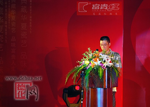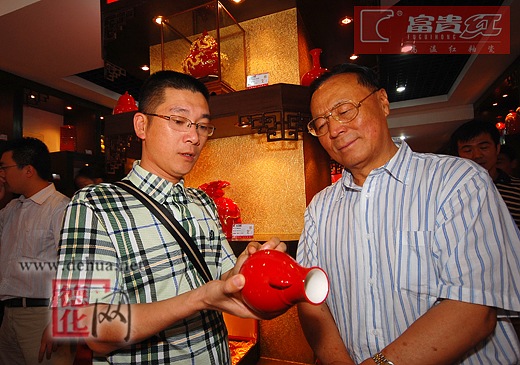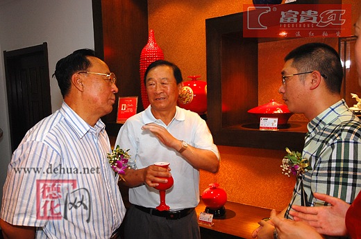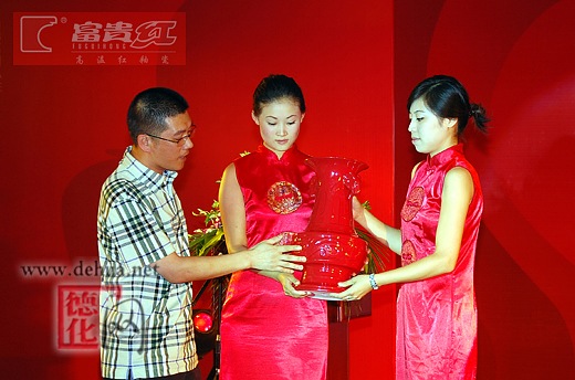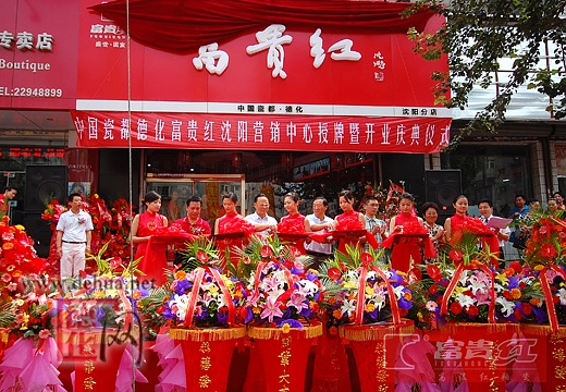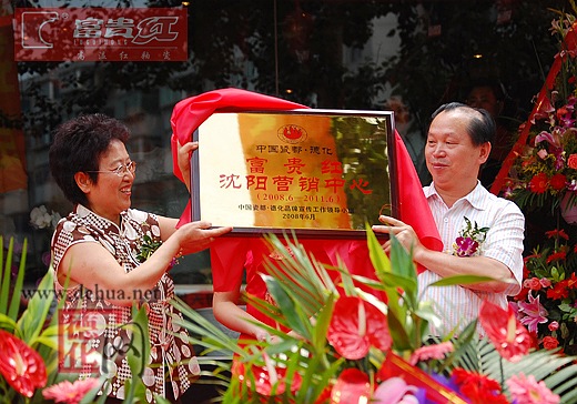 6月21日,海峡两岸关系协会会长陈云林赠送给海峡交流基金会会长江丙坤的见面礼富贵红《两岸同根》高温红釉陶瓷精品如期登陆沈阳,同时,中国瓷都·德化富贵红沈阳营销中心也在同一天授牌开业。原辽宁省人大主任王怀远,原辽宁省人大副主任郭大为,德化县副县长黄耀昆,德化县政府助理调研员黄发建,及沈阳市政府各级领导等出席授牌仪式并剪彩。
