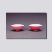 此碗是雍正时烧造的名贵品种,其釉色酷似胭脂而得名,又称"胭脂红"。因是将金水融入釉中,又叫"金红釉"。胭脂水釉器一般胎体极薄,器里施纯净的白釉,在器物口沿处露出一道白色的边,内外相衬,愈发显出胭脂色的娇艳。