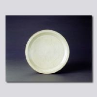 首都博物馆藏。折沿,浅腹,微圜底。外底满釉,外壁有一圈窄泥条装饰。内外施白色釉,内心刻划萱草纹,线条自然流畅。釉色白中微泛黄,釉面莹润。