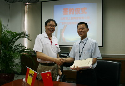 6月16日上午,沈阳西班牙陶瓷工业园博士盖陶瓷有限公司叶正敏董事长一行4人,来科达机电参观考察,受到了科达机电陶机本部总经理吴木海的隆重接待,在愉快的气氛中双方进行了亲切友好的交谈并举行了签约仪式!