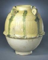 说 明: 魏晋南北朝时期        此罐1958年出土于河南省濮阳李云墓。李云为北齐车骑将军。据出土墓志记载,该墓为李云夫妇合葬墓,葬于北齐后主武平七年(576年),由此可断定该罐的下限年代。