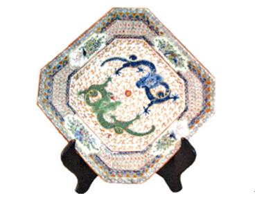 叶洁瑜从另两位读者发来的图片中鉴定出,一件是光绪“青花花口叶纹盘”,另一件是光绪“广彩双龙方盘”。外销瓷,指在中国生产、专门销往国外的陶瓷器。历史上出口的瓷器中,以景德镇生产的青花瓷为最大宗。不过,广州也发展了自己的瓷器品种。那就是独具特色的“广彩”。