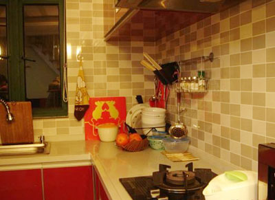 再看看厨房灶头整体吧,墙上挂的,台面上放的很多都是宜家的,买的最实惠的那些,呵呵,用起来挺方便,看起来也顺眼。碗放得有点乱,大家别介。微波炉好像离灶头近了点,但实在没地方放,要不挂在吧台旁边?以后再考虑吧,打洞挺吓人的