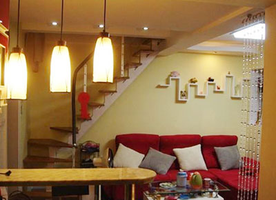 说是说一室一厅60建面,但加上个35平左右的阁楼,整个装修还是非常费钱的,光多一个楼梯就赶上复式的装修标准了,加上整个阁楼用杉木打造成小木屋,都是烧钱啊!