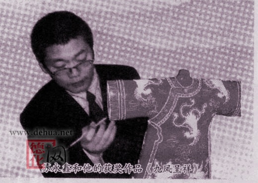 苏永鑫是福建德化人,1972年出生。他从小就对书画、雕塑感兴趣,16岁师从福建省高级工艺美术大师邱双炯,开始陶瓷学艺生涯。独立的思想和高度的热忱,使他盯准漆线雕工艺。从学徒到技师,他立志把德化陶瓷艺术推向一个新的高峰。他独自一人来到漆线雕的产地厦门闯荡,师从台湾知名工艺师专攻漆艺。以他自己年轻时精通的雕塑技艺融入漆线雕的精雕细琢的同时,又不辞辛苦奔波于闽南各地,挖掘、继承漆线雕这一优秀的民族文化的艺术奇葩,拓宽了创作领域的空问,终于结出了累累硕果。其开创的新艺术品种曾被国内多家知名礼品公司作为参赛作品在全国美术大赛中获奖,并作为国宾礼品馈赠外国友人。