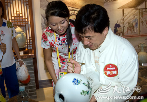成龙在江西“祥云小屋”亲手绘制瓷瓶